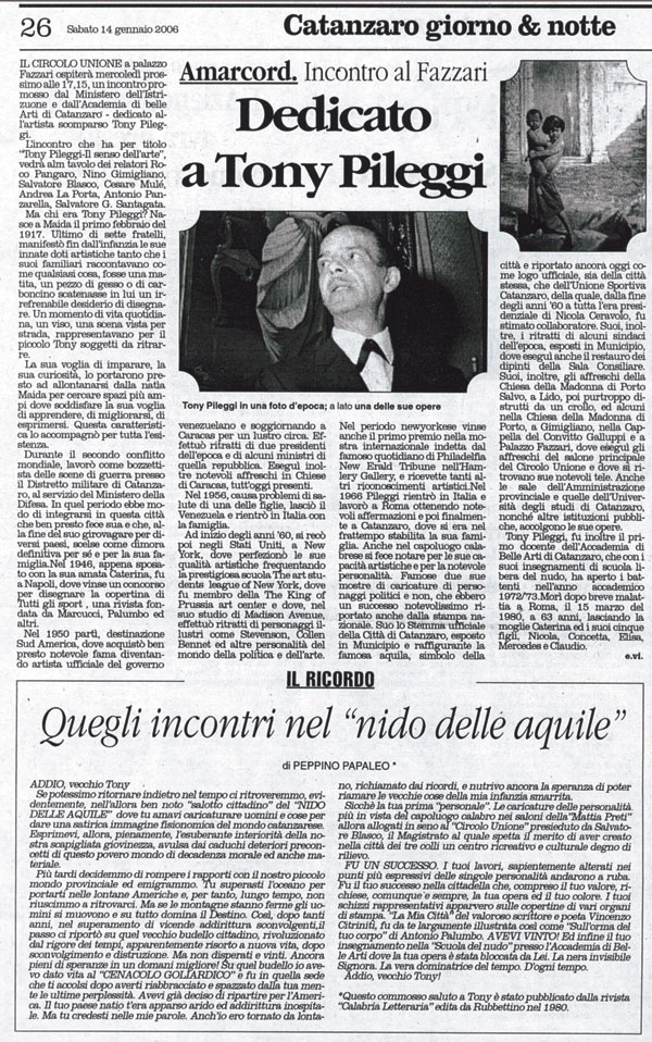 Convegno dibattito su "Tony Pileggi, il Senso dell'Arte". Catanzaro 18 gennaio 2006