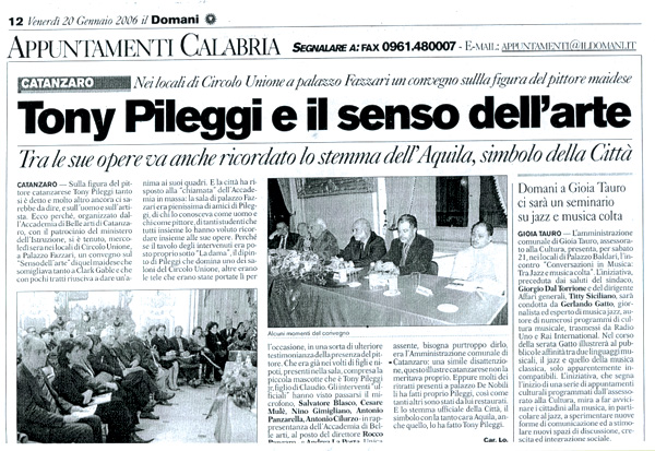 Convegno dibattito su "Tony Pileggi, il Senso dell'Arte". Catanzaro 18 gennaio 2006