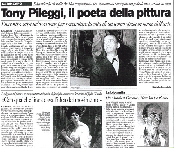 .... Il Giornale di Calabria - Tony Pileggi il poeta della pittura